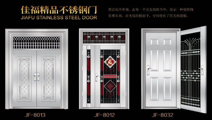 本公司成立于2004年,已有19年的生產進戶門的經驗積累。公司現擁有鋼質非標門生產線、標門生產線及不銹鋼門三條生產線,我公司專業設計、制造、銷售鋼質系列進戶門、防盜門、不銹鋼門等產品,擁有“宇佳?盈福”和“佳有?!?、“家福.興隆”三個自主品牌和產品系列。公司引進了先進的生產技術,配置了成龍配套的現代化生產流水線。產品工藝成熟,質量上乘。同時,公司廣納賢才,聚集了一批具有開拓創新精神的各類高級管理和技術人才,建立了一套先進的管理模式。